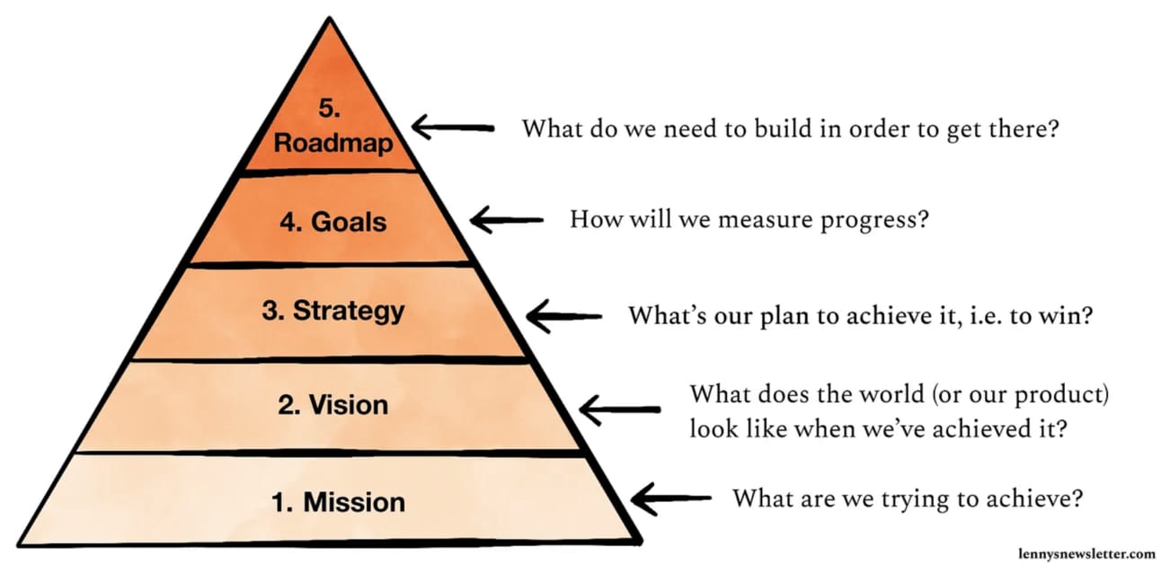 It’s not enough to just determine which problem you want to solve and the end state you want to reach. You’re responsible for the mission, vision, strategy, goals, and roadmap — and yes, those are all different things.